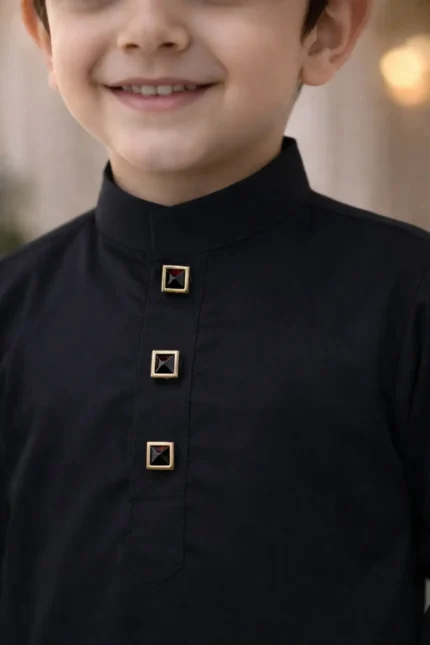 ISLIBA Premium Black Arabic Jubba Thobe for Boys | Ramadan & Eid Wear | Soft Comfortable Fabric | Hand-Tailored Stitching | Jubba for Baby Boys & Kids Black