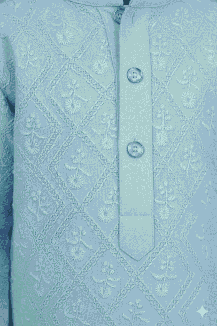 Cotton chikankari kurta for baby boy Chikankari Embroidery: This kurta and pyjama set features intricate Chikankari embroidery, a traditional Indian