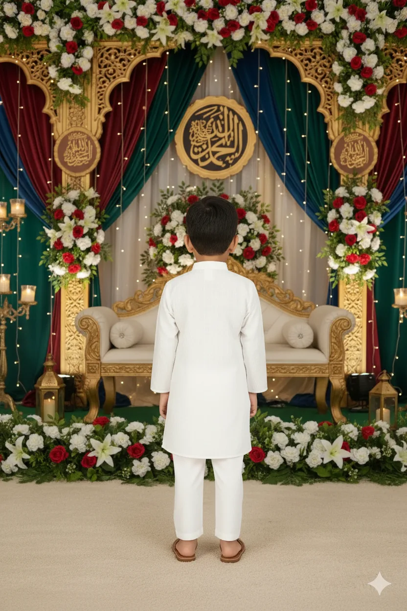 Specially handcrafted cotton Pathani suit for kids designed to bring traditional elegance and festive comfort. Includes kurta and salwar, perfect