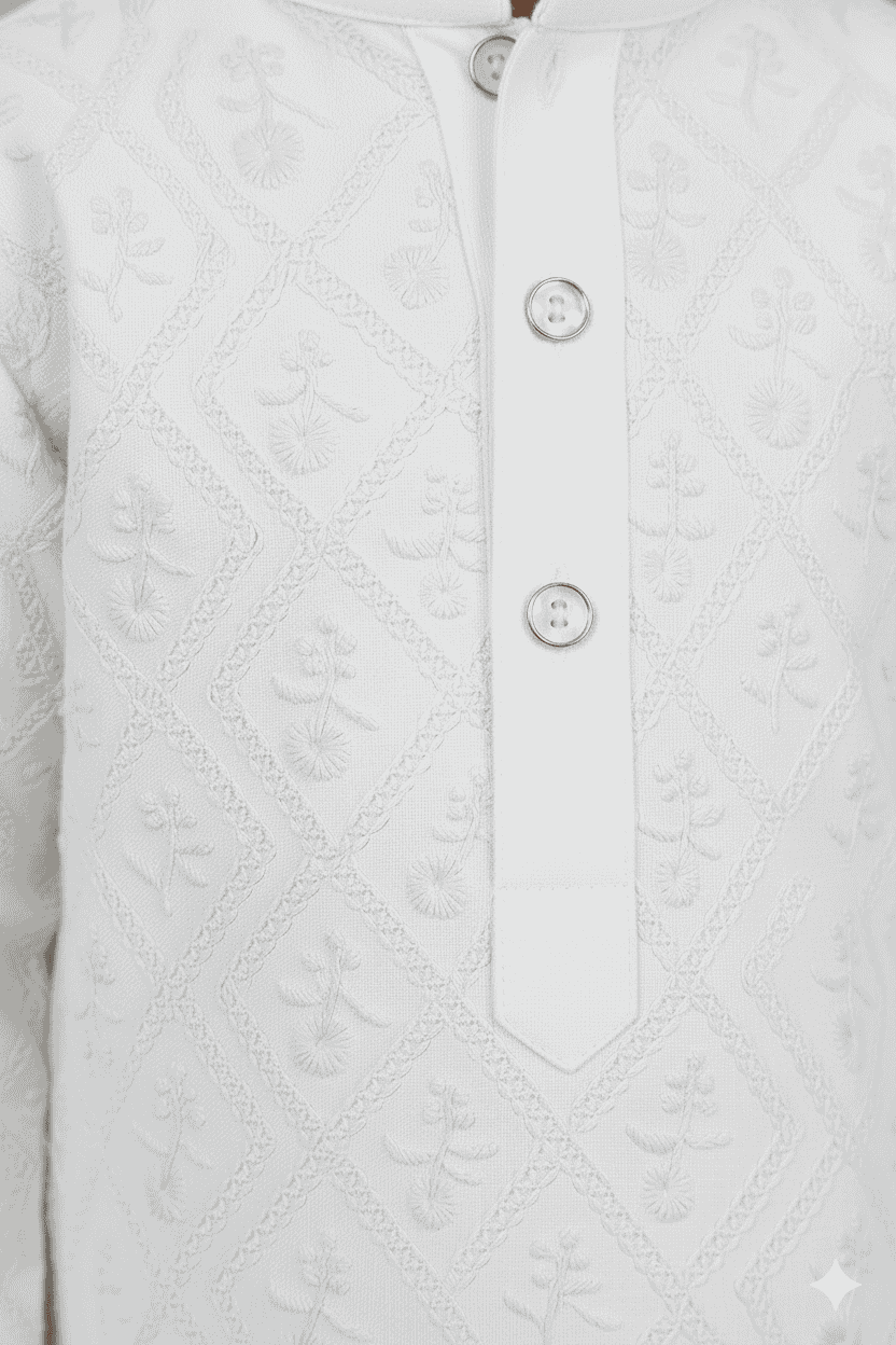Cotton chikankari kurta for baby boy Chikankari Embroidery: This kurta and pyjama set features intricate Chikankari embroidery, a traditional Indian